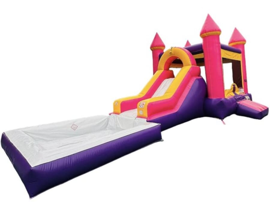 Introducing the Pink Water Combo with Pool - the ultimate summer fun package for kids! Dive into a world of laughter, splashes, and endless entertainment with this exciting inflatable combo.This vibrant pink water combo features a thrilling water slide, a spacious bounce house, and a refreshing pool - all in one! Watch as your little ones climb up the ladder and slide down the slippery slide, experiencing the thrill of the water rushing beneath them. The soft and bouncy bounce house provides a safe and secure area for jumping and bouncing, while the pool offers a cool oasis for a quick dip or a relaxing float.This combo is perfect for backyard parties, summer camps, or any outdoor event where kids need to beat the heat and have a blast.